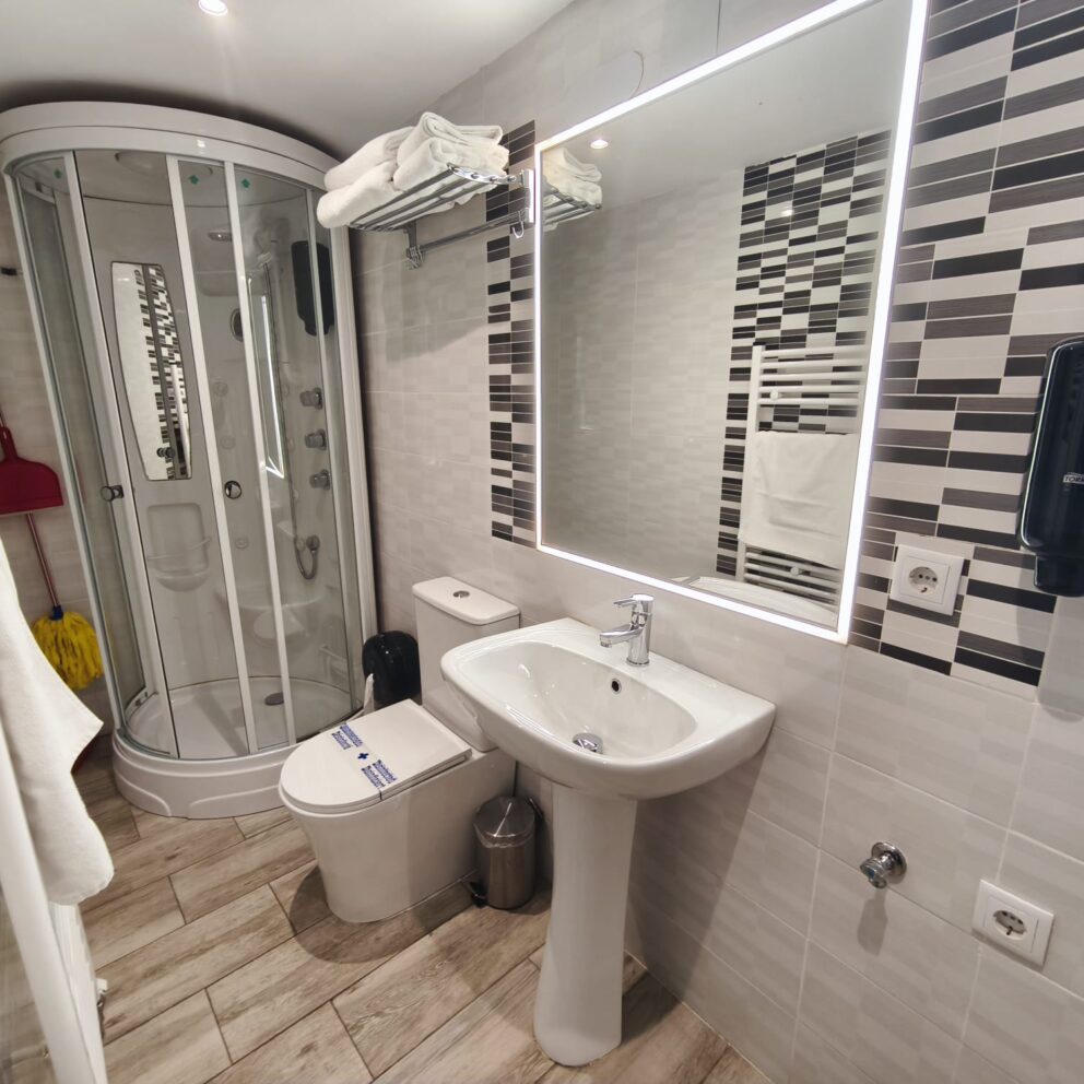- Servicios baño privado, cabina de hidromasaje, calefacción, cocina integrada completa, frigorífico combi, iluminación Led dual regulable, ventanas Climalit Silence ©, vitrocerámica, Wi-Fi gratis